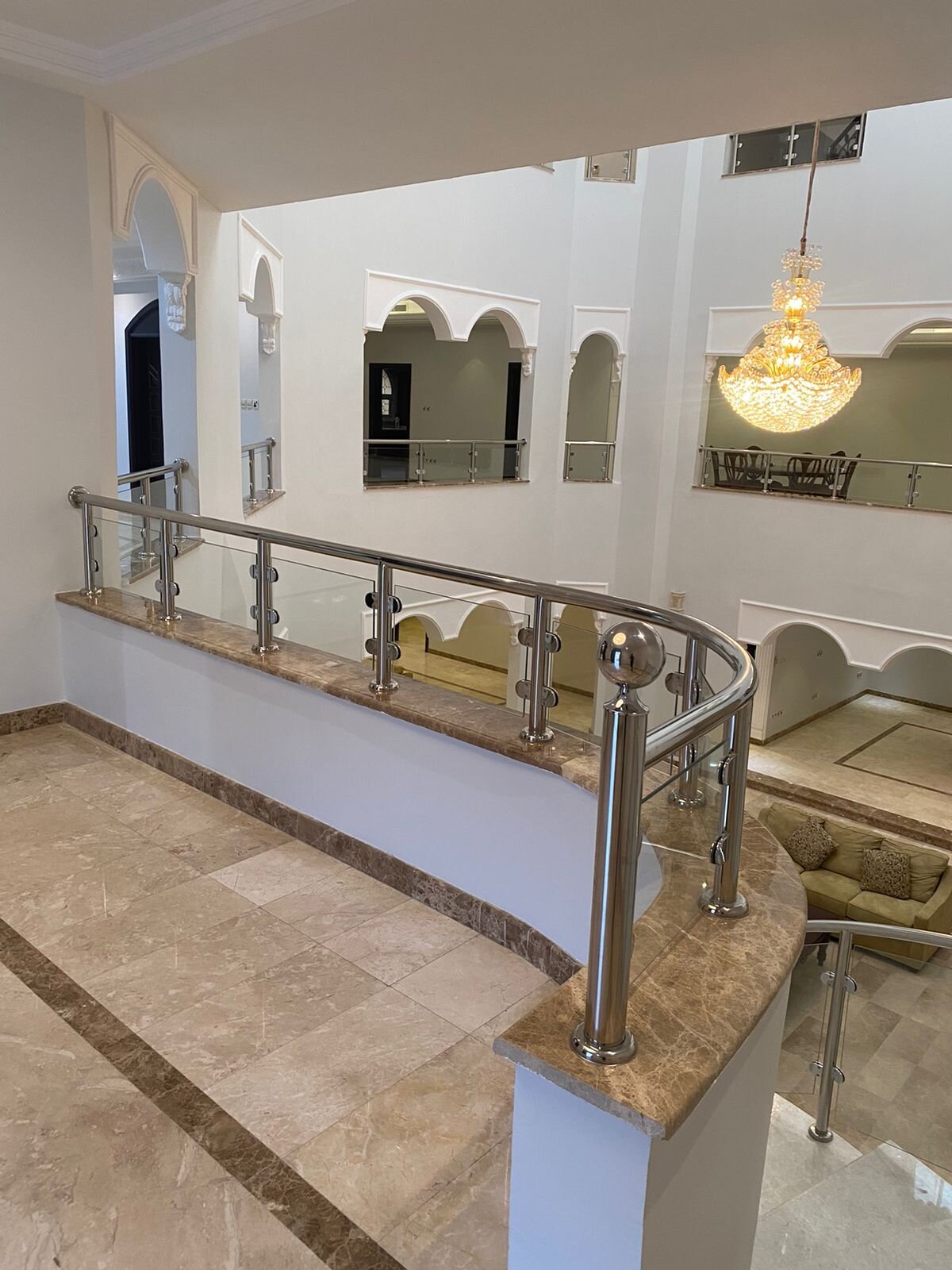 درج على شكل حلزوني كبير بالاضافه لملحق كامل للعاملات مؤثث بالكامل من دورات المياه ومطبخ وغرف غسيل