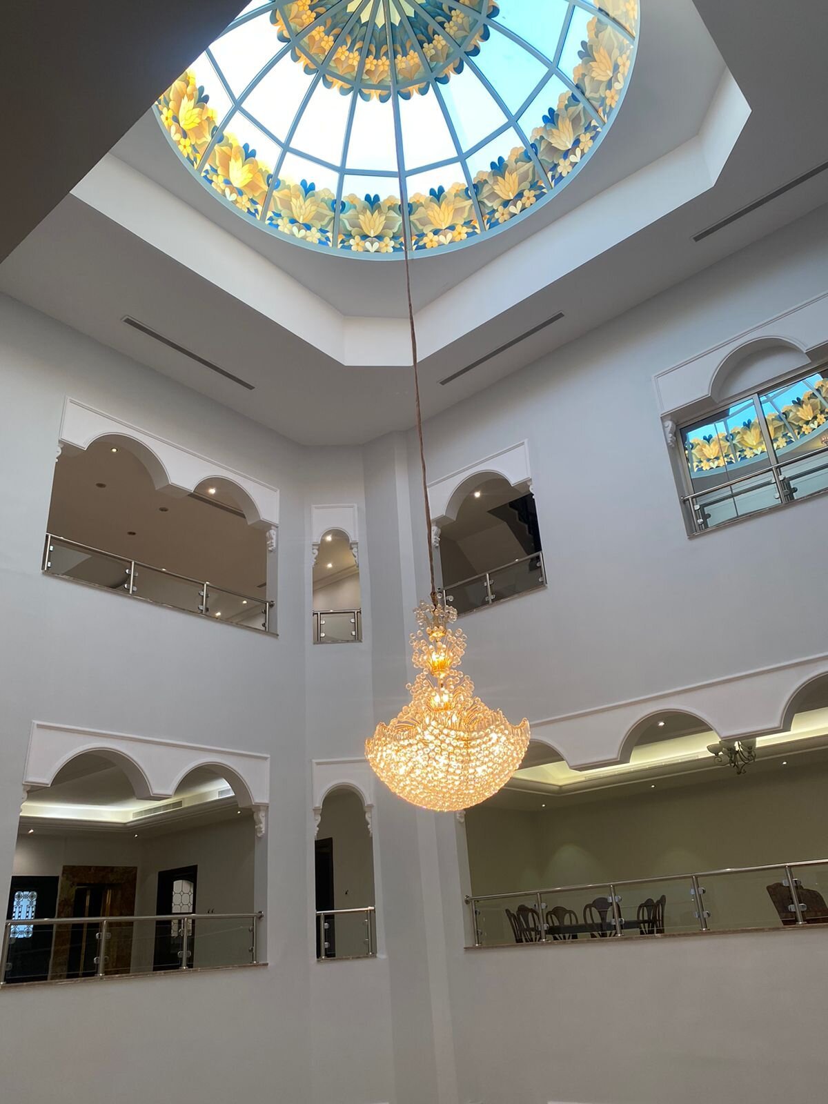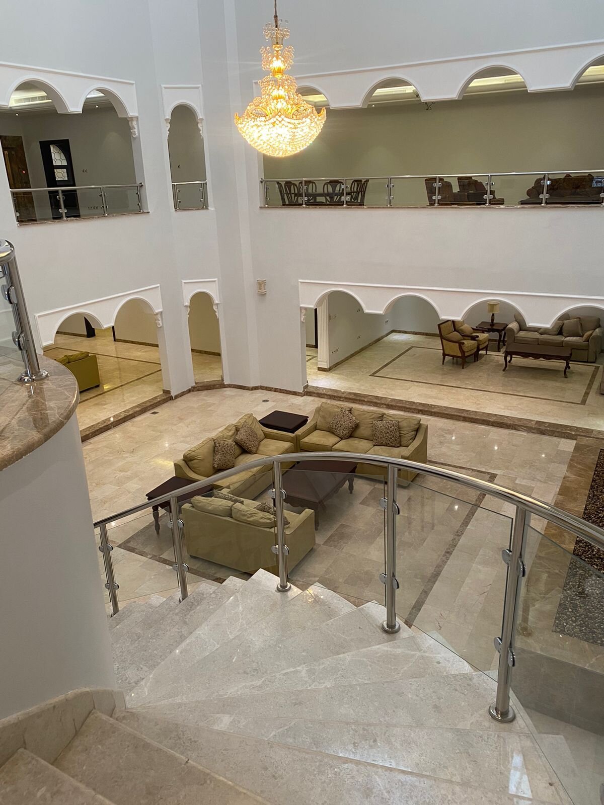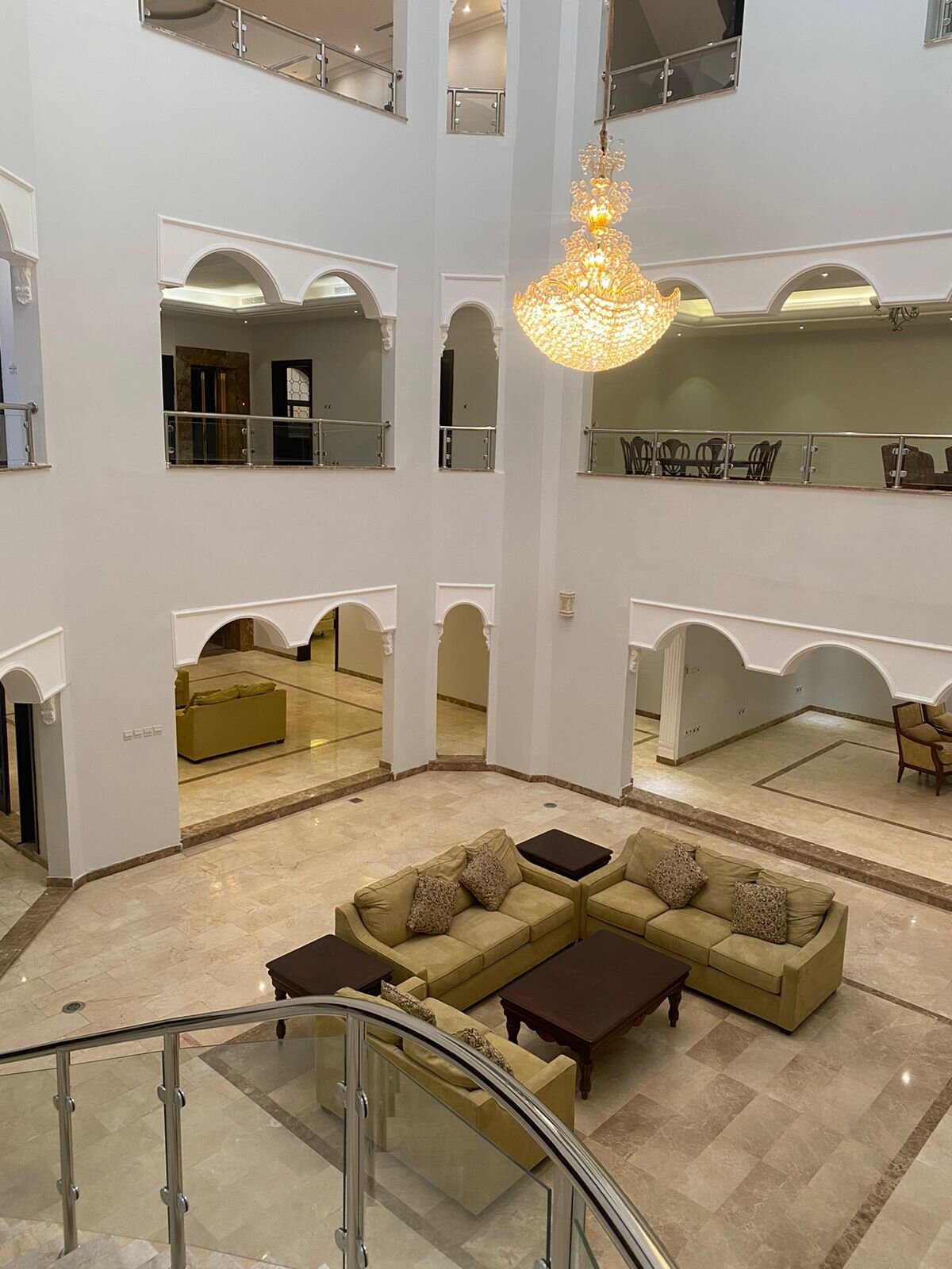 مكون من ٥ اجنحه فاخره وصالات كبيره مفتوحه وصالات طعام وبهو بالكامل بالاضافه لمجالس استقبال وغرفه خاصه بكبار السن.
