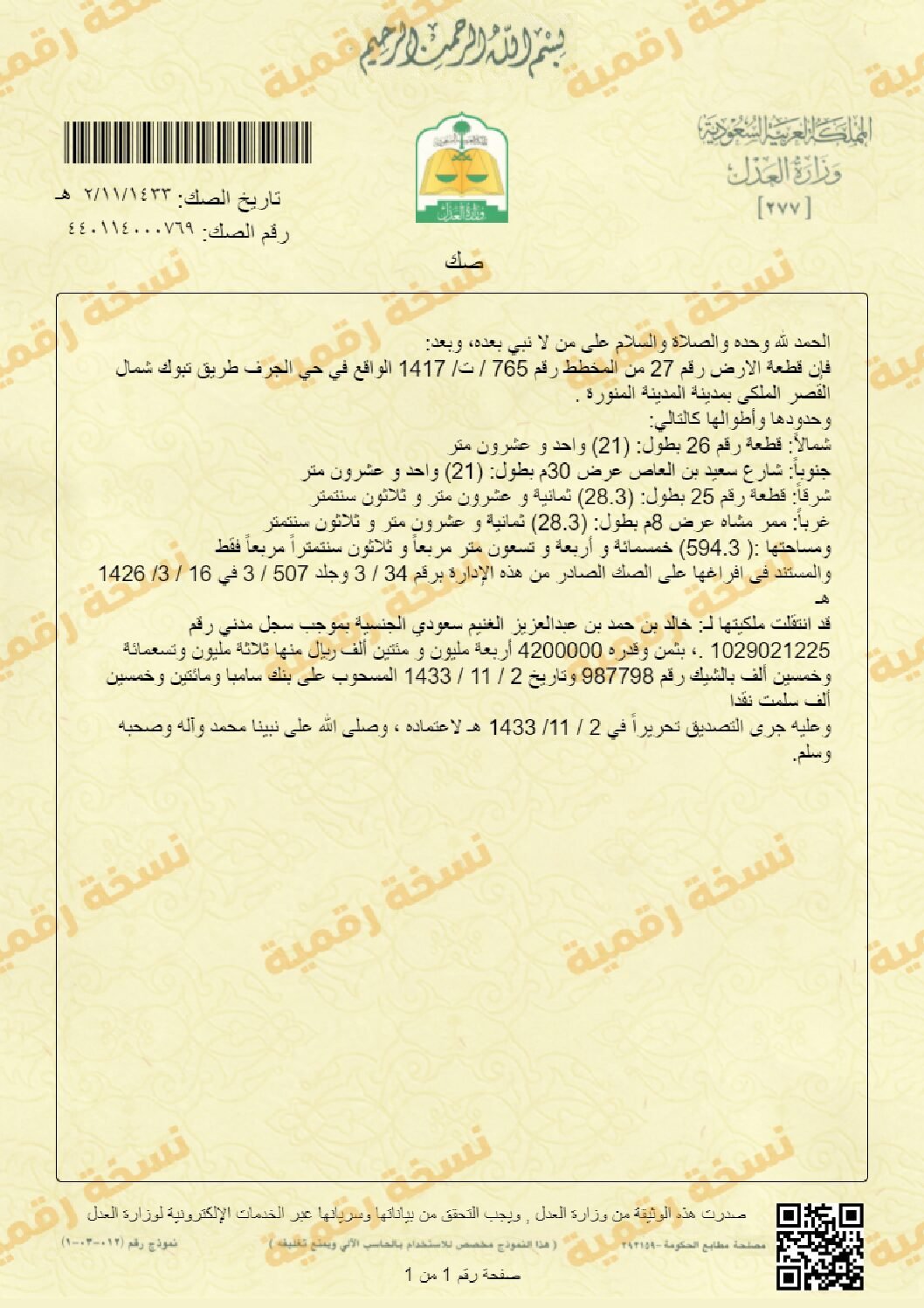 فيلا فاخره على شكل قصر مُصغر في حي سلطانة ( بجانب قصر امير منطقة المدينة ) زاوية على شارعين بطول ٣٠ متر مساحتها ٥٩٤.٣ متر